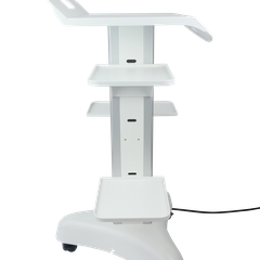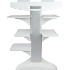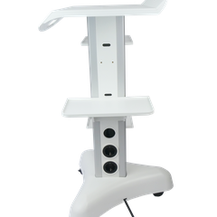 Durch unterschiedliche Ablagegrößen kann der Gerätewagen individuell zusammengestellt werden, je nach Bedarf. Für die Kabel ist innerhalb der Säule ein Kabelkanal