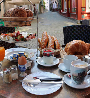 Das Café lädt zum Frühstück ein oder zum genüsslichen Kaffeetrinken mit einem leckeren Stück Kuchen oder Torte.