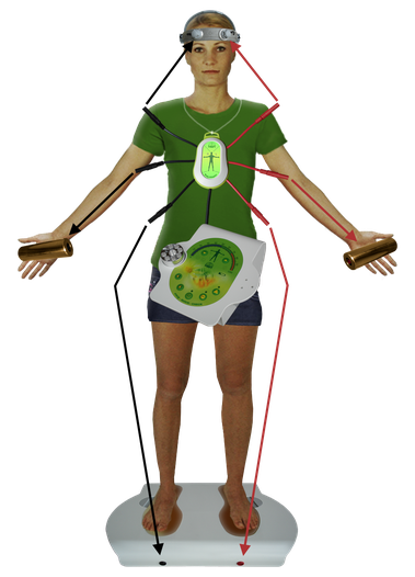 Adapter mit Anschlüssen für Kopfelektrode, Handelektroden und Fußpodest